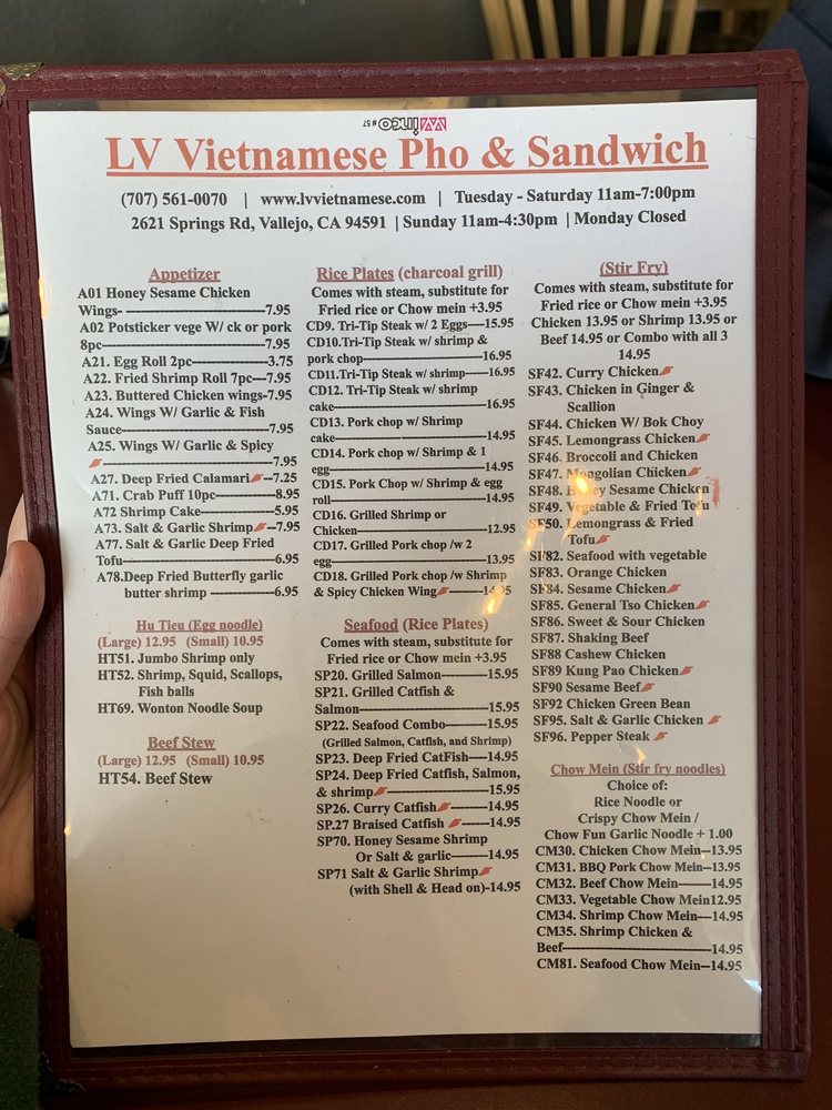 Introducing LV Vietnamese Pho and Sandwiches, a Vietnamese sandwich spot located in Vallejo, CA. With a diverse menu that includes options for vegetarians and meat-lovers alike, this casual eatery offers a range of dishes from pho to banh mi. Customers rave about the generous portions and flavorful meats, with highlights such as the Vietnamese BBQ Pork sandwich and the chicken Bánh mì receiving high praise. The inviting atmosphere, friendly service, and a variety of amenities like outdoor seating and TV make dining here a pleasant experience. Whether you're looking for a quick bite or a leisurely meal, LV Vietnamese Pho and Sandwiches is a must-visit spot for delicious Vietnamese fare.