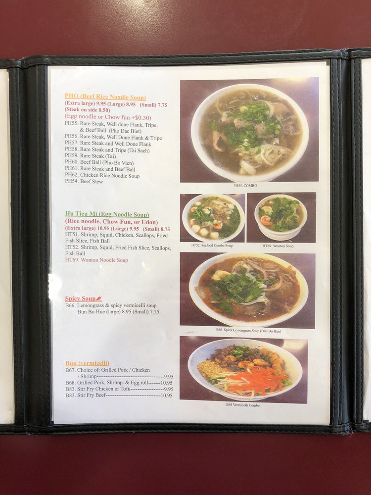 Beef rice noodle soup with rare steak & tripe. Available in large or small sizes.