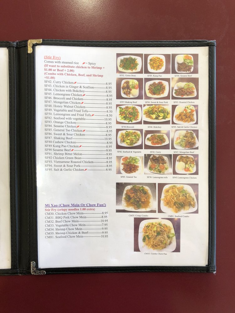 Lemongrass chicken option with beef, shrimp, or mix. Served with chow mein, fried, or steamed rice.